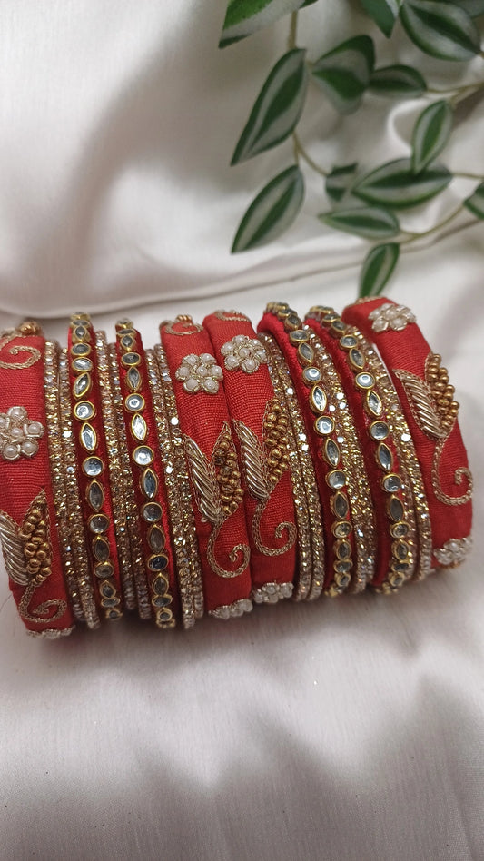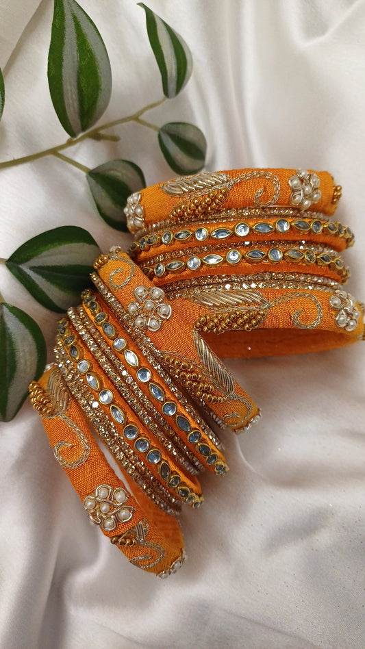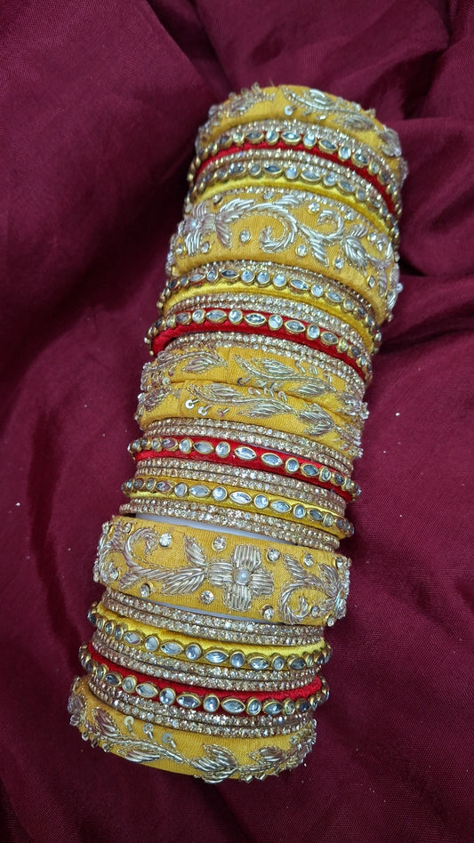 MAYUR YELLOW N RED ZARDOZI BANGLES