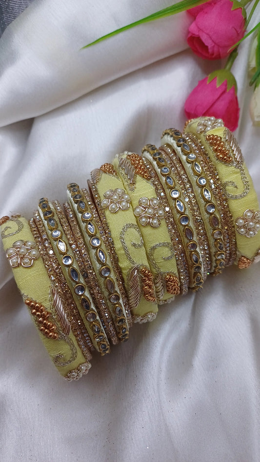JASHN LIME YELLOW ZARDOZI BANGLES