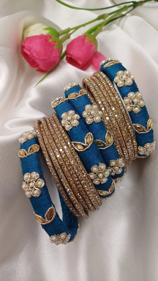 JASHN TEAL BLUE ZARDOZI BANGLES