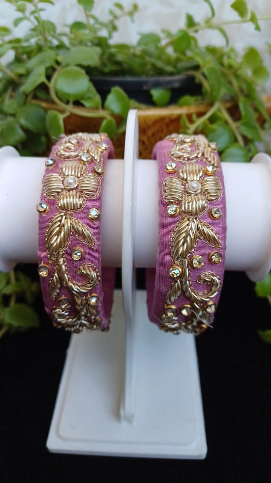 Sold outPINK CHAND ZARDOZI BANGLES SET
