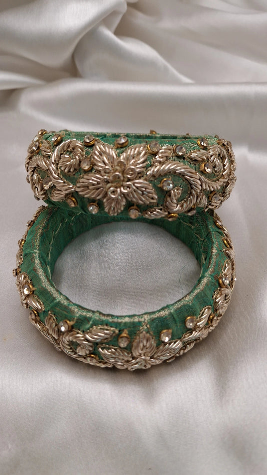 Sold outGREEN MULTICOLOR ZARDOZI BANGLES