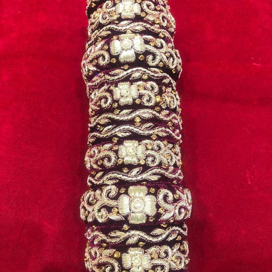 Sold outMAROON RUHI ZARDOZI BANGLES
